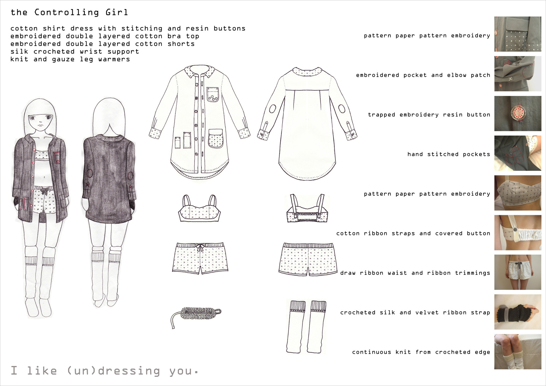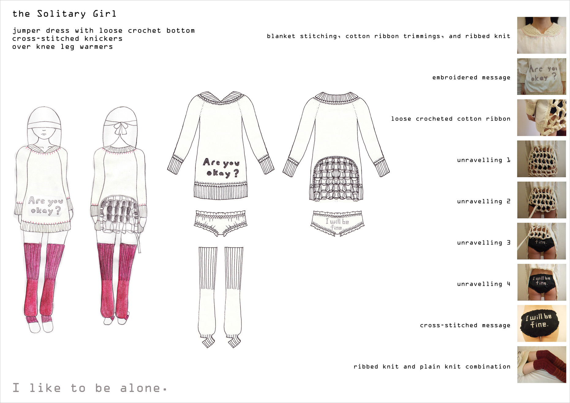 This collection represents the clothes No.0 makes for the other girls, using all her time and energy. The labouriously handmade pieces shows the feeling she has for them.