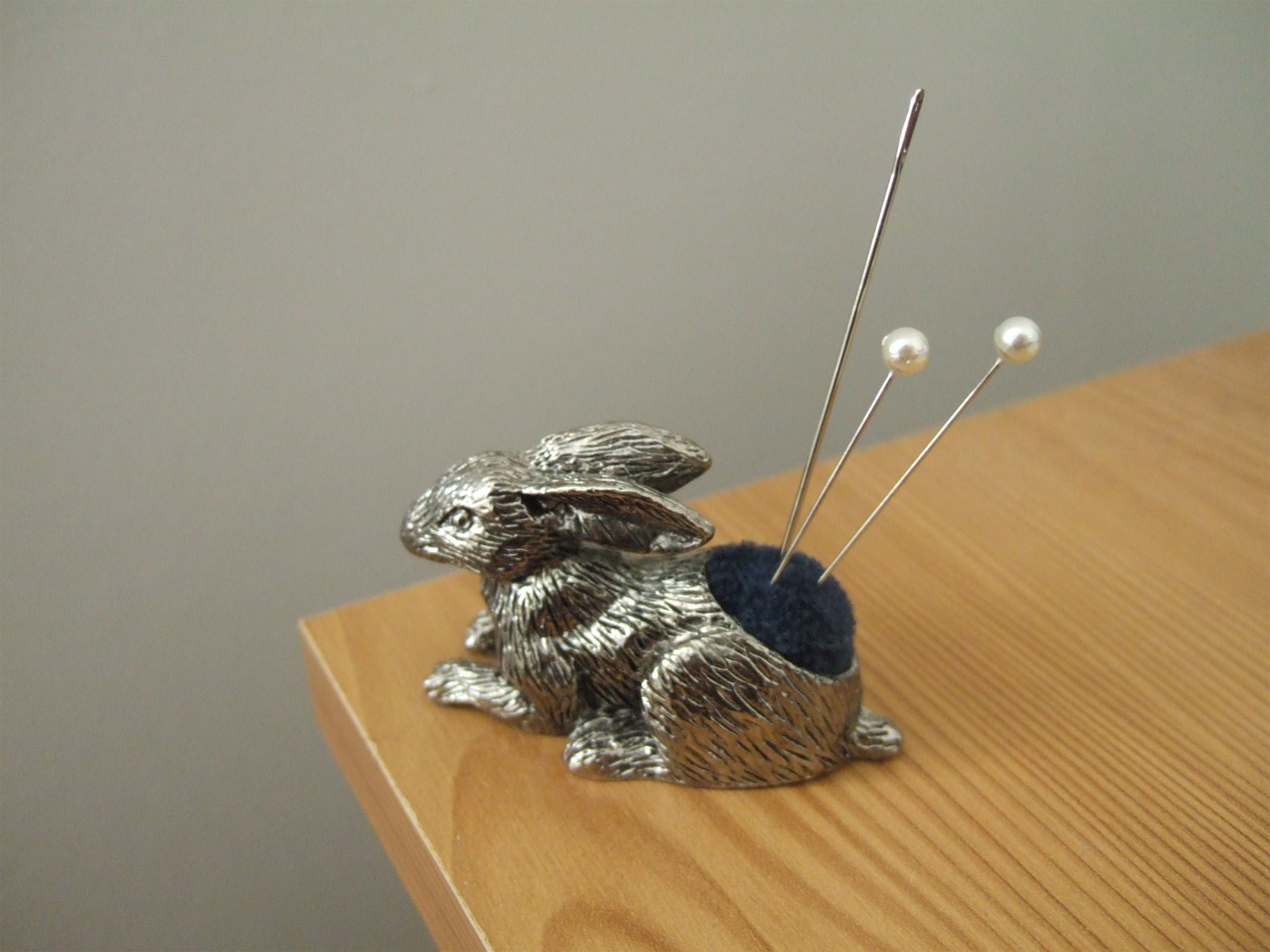 rabbit pin cushion made of pewter